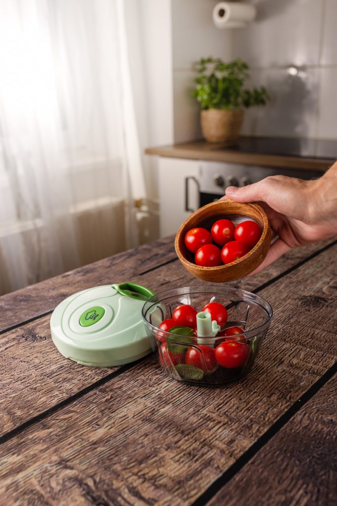 ăDas Obst und GemĂŒse zerkleiner funktioniert manuell und ohne Stromă- einfach Schnur so oft ziehen, bis die passend GröĂe haben. z.B. Zwiebel Knoblauch, Salat, Apfel, Avocado, NĂŒsse oder Samen. Ideale Mixer-Einsatz um RĂŒhren und Mixen von Dips, Aufstrichen, Pestos, Desserts und Kindernahrung vorzubereiten geeignet.